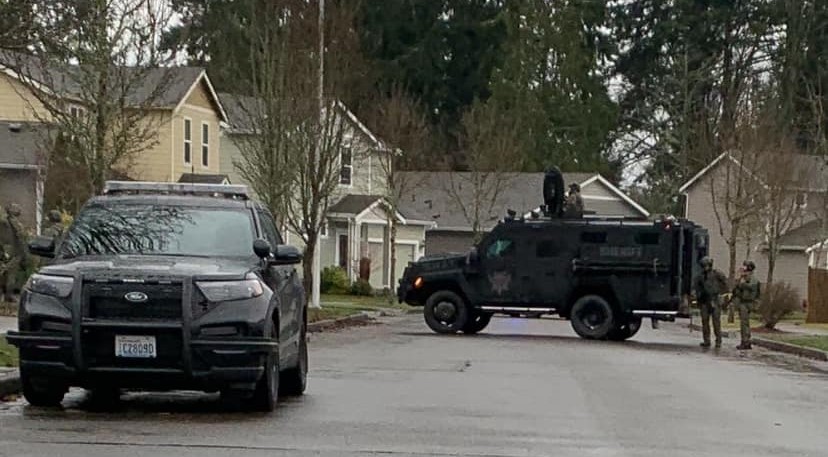 By noon, the Thurston County SWAT Team had been called out to assist. They attempted to negotiate with the suspect to peacefully exit the residence.