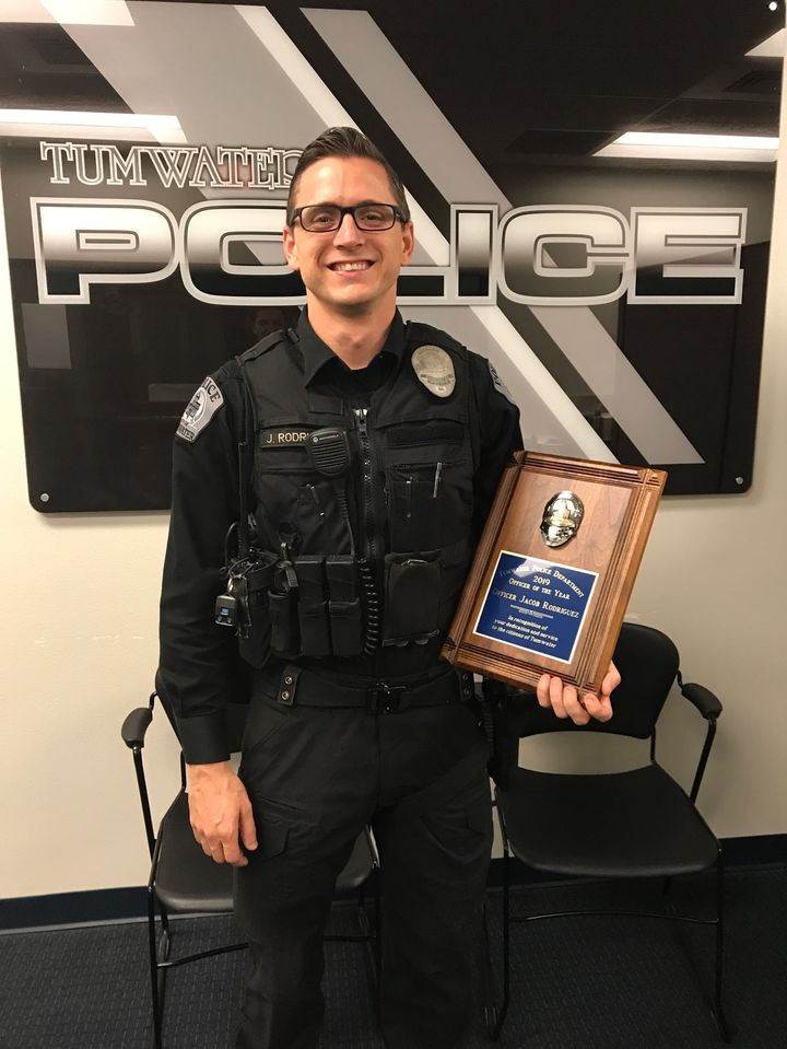 Tumwater Police cancelled the ceremony to honor Officer Rodriguez due to COVID-19 restrictions. He was voted the winner of the award by his fellow officers earlier this year.
