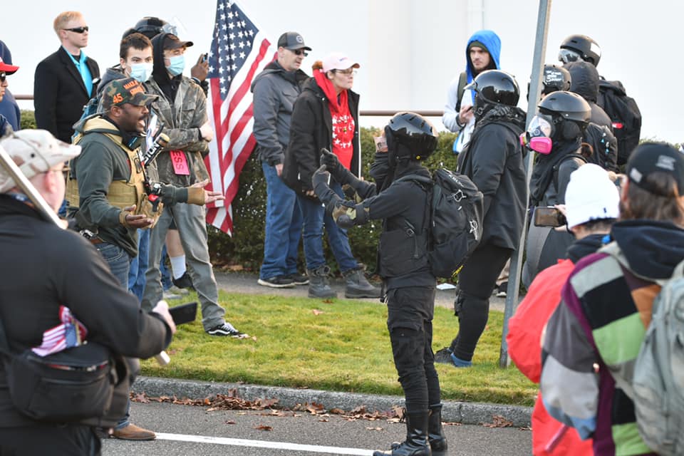 At one point, a shot was fired from one group into the opposing crowd, the Police Department said. They did not elaborate on which protest group the shooter belonged to, though from witness statements he was a part of the right-wing/pro-Trump group.