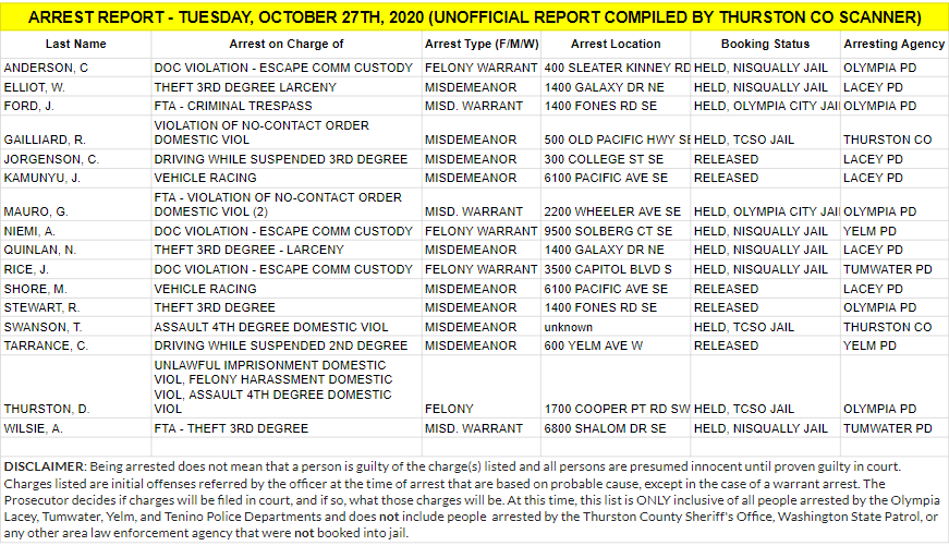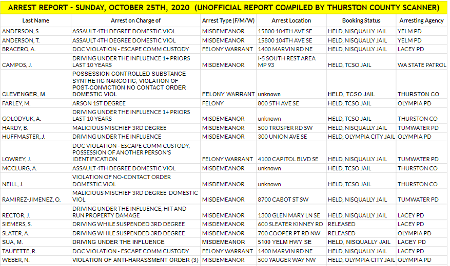 It is unknown at this time if drugs and/or alcohol were a factor in the collision. A next-of-kin notification was completed by the Thurston County Coroner’s Office on Friday.